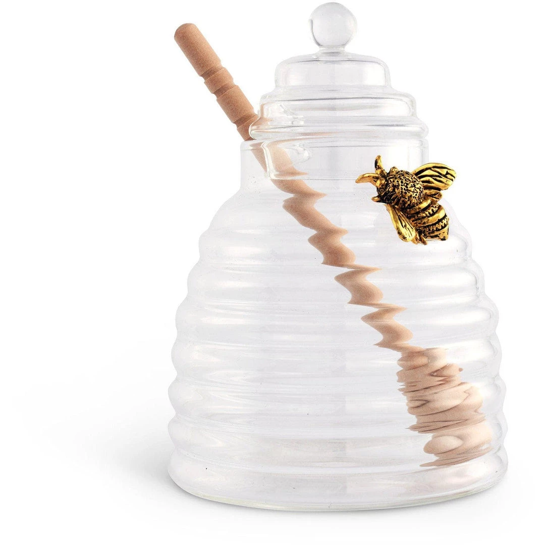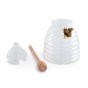 Our unique honey pot with dipper designed by our artists at Arthur Court will be your new favorite way to enjoy honey. The beautiful honey pot shape is inspired by the natural beehive and features a hand-crafted bee sculpture that adds a charming accent.
