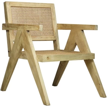 The Nimes Armchair draws on mid-century furniture design with its geometric, straightforward lines. Made of solid wood, the Nimes Armchair features a strong rattan seat and back that give this accent chair an open and airy appeal. With its wide seating, it makes a great occasional chair. Available in Dark Brown or a Sandblasted Natural finish.