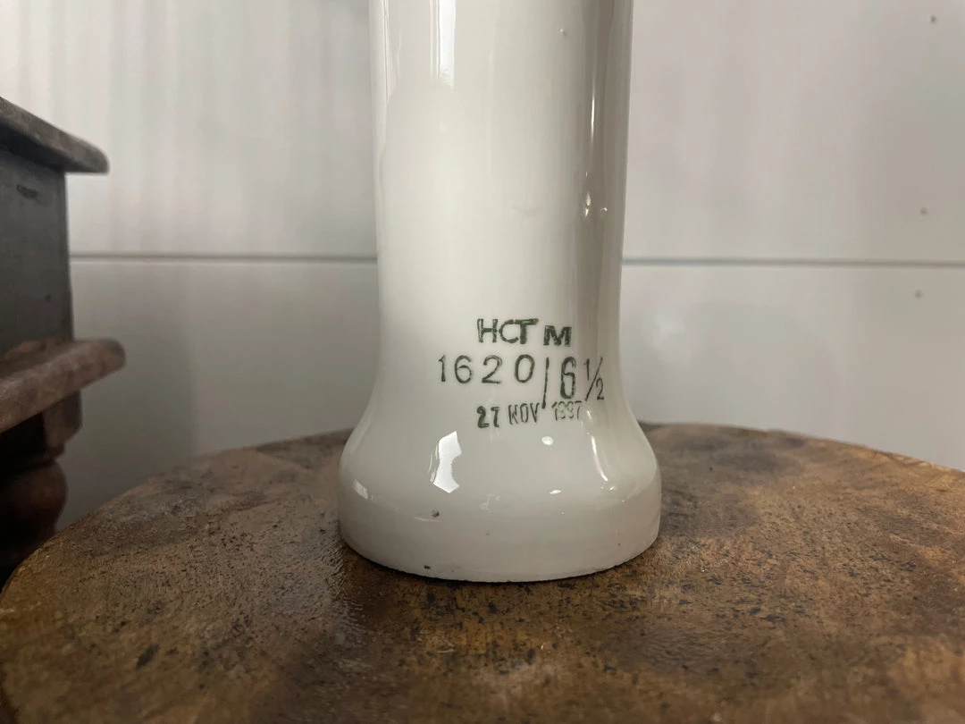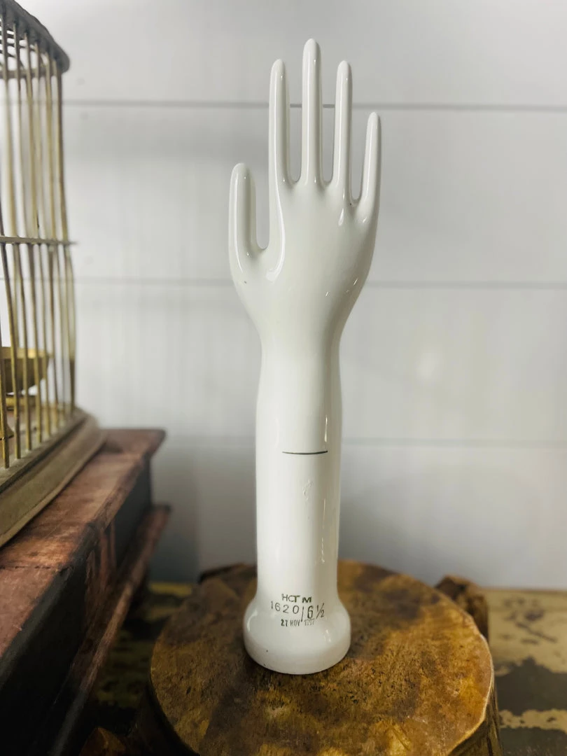Stands 15.5″ Tall, Diameter of Base is 3″, Hand is 3.75″ Wide.