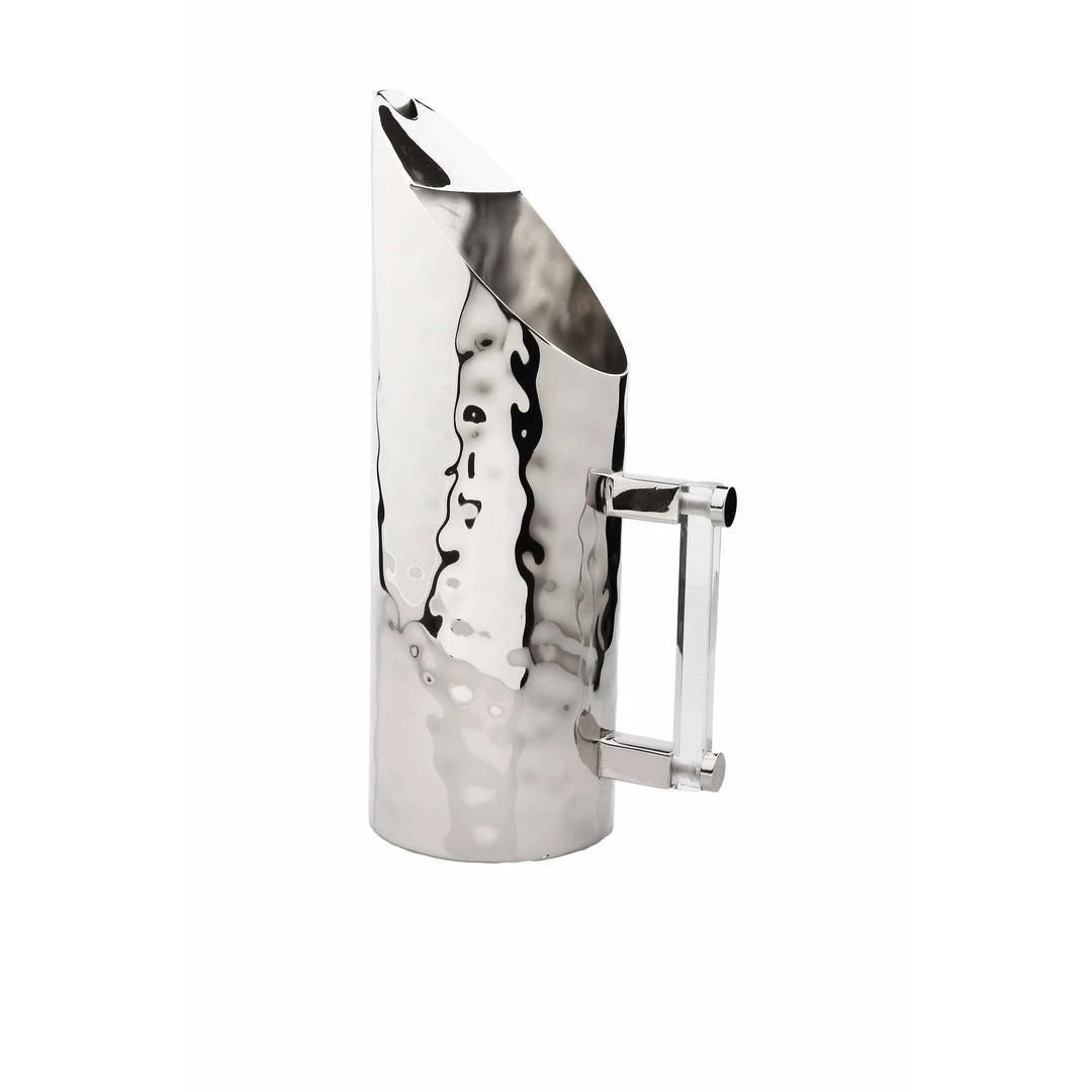 This piece always looks fresh and new in any table setting. Sculpted with a unique design, this pitcher encompasses practicality and style in its spout opening. It is completed with a fine hammered design to elevate this piece from simple to spectacular. Instead of the usual round, the handle of this pitcher is squared shape, promoting a modern finesse.