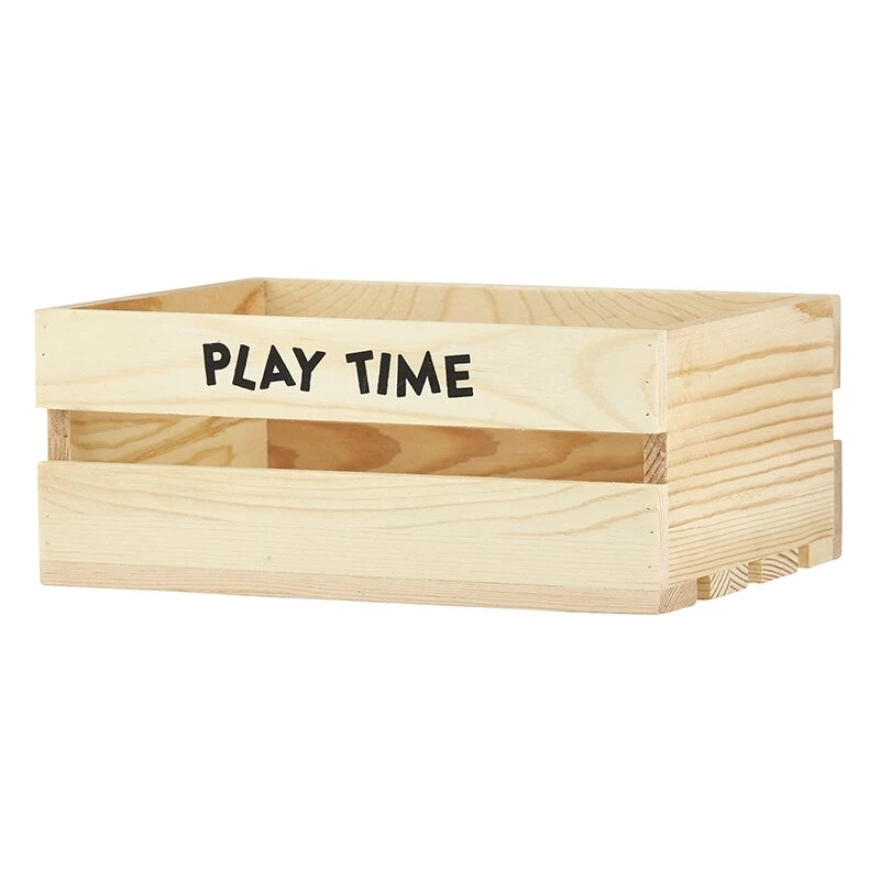 Wood crate is perfect to help keep play time organized! Use to display all of our fun toys and rattles! Not intended as a toy. Use with adult supervision.