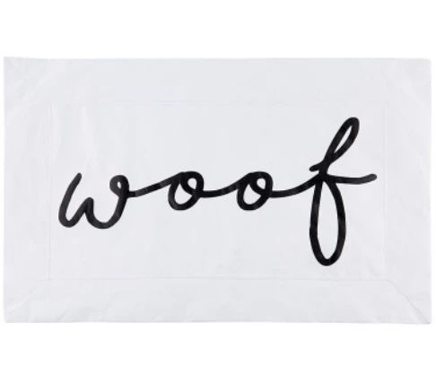 - Features the phrase: Woof