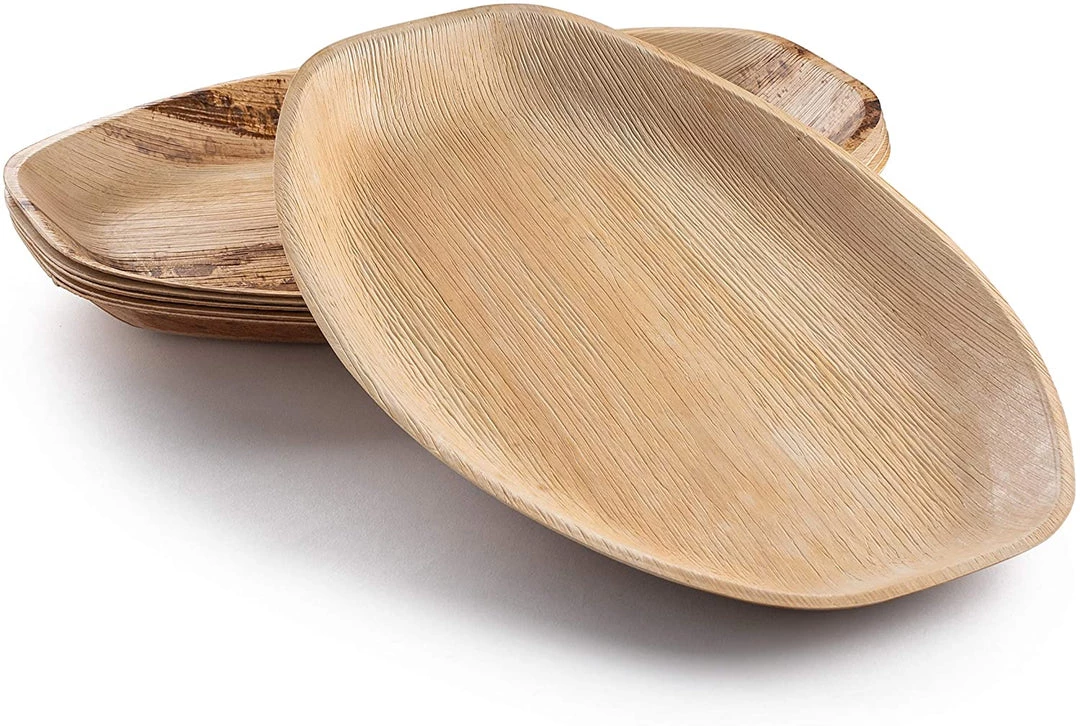 Set of 6, 13.75″ Long Dried Areca Palm Single Use Platters