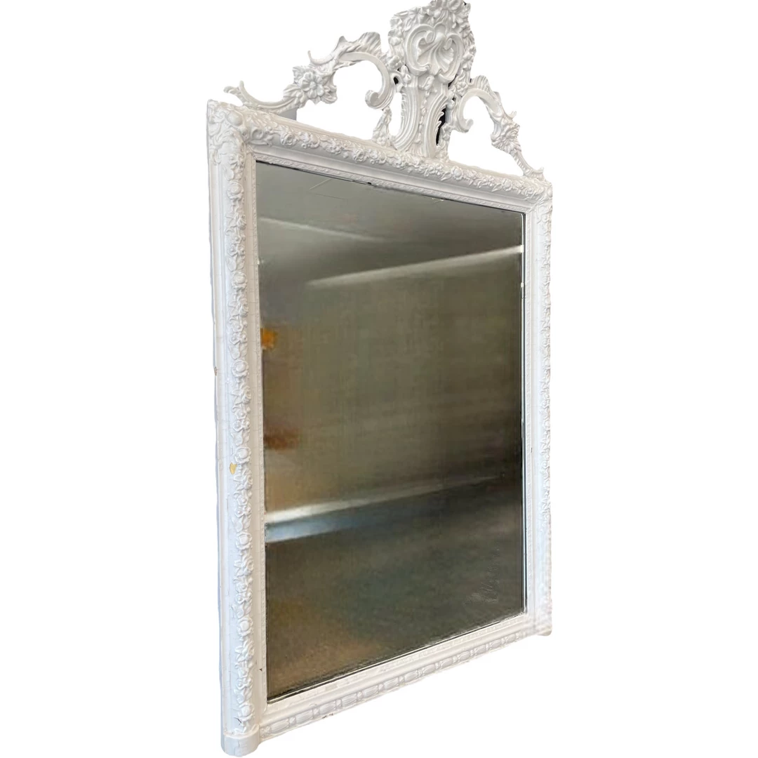 Antique Mirror 19c French Patina Style Refinished White lacquer