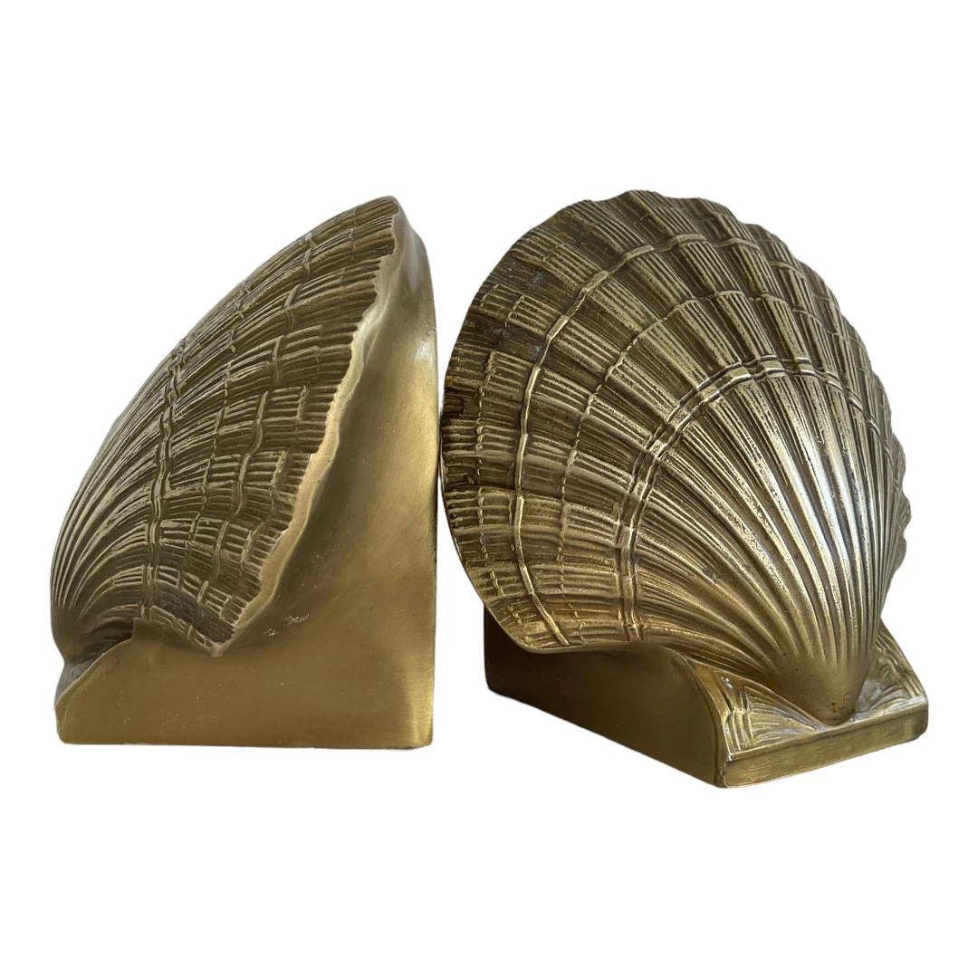 Vtg Pair clam shell bookend set (2) Stamped PMC