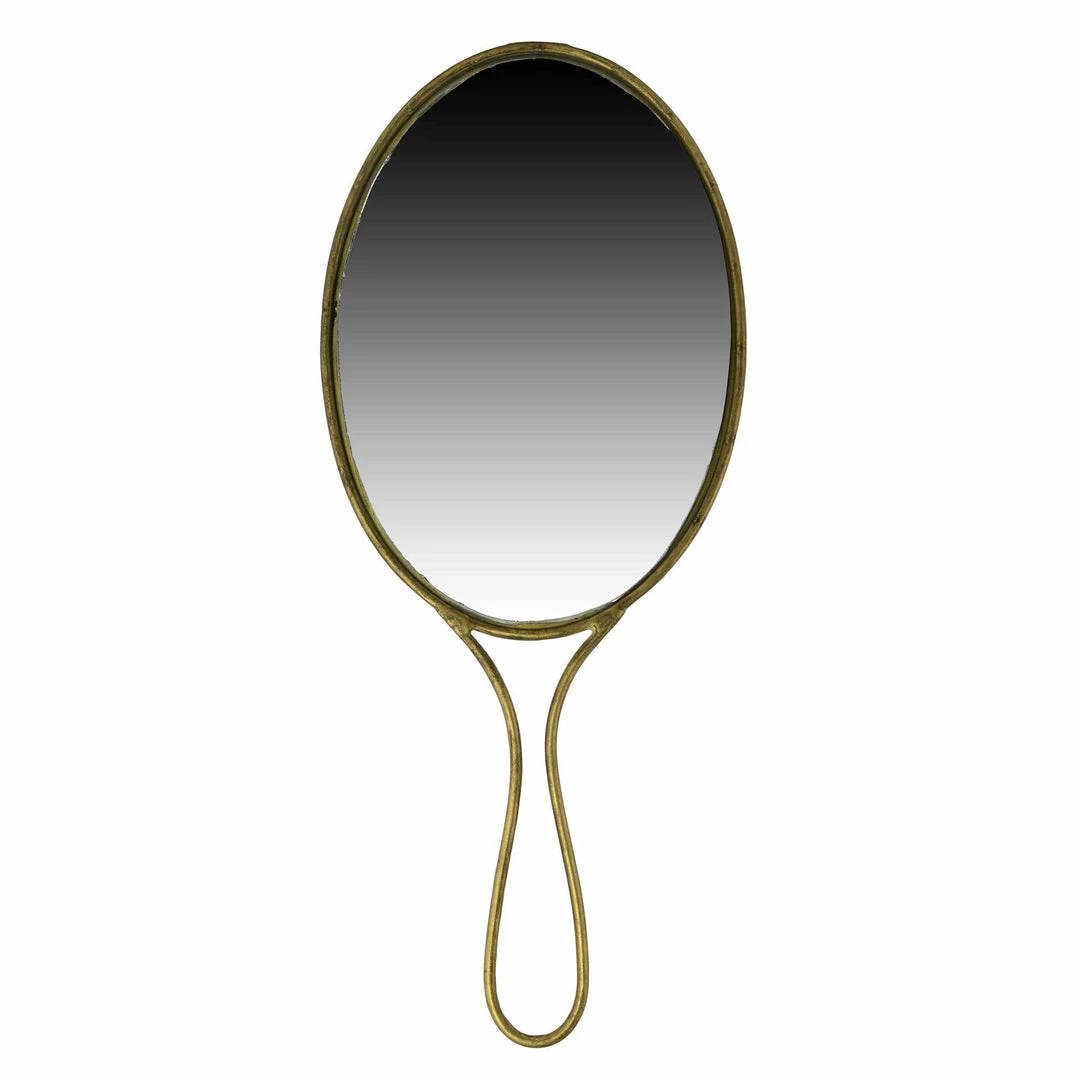 Brass-toned metal offsets reflective mirror in these classic yet modern hand mirrors.