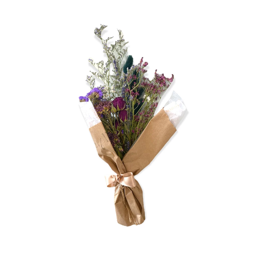 Perfect for a small vase at home, our petite dried bouquet wrap is the perfect mix of dried florals and textures. our dried florals are real flowers that are either dried in-house or undergo a preservation process. Dried and everlasting, giving any space the feel of real flowers without the maintenance required. Dried florals are our favorite for gifts or home decor because they don’t require upkeep-you can simply place in them your favorite vase, swap them out with the change of seasons, and watch them light up a room.