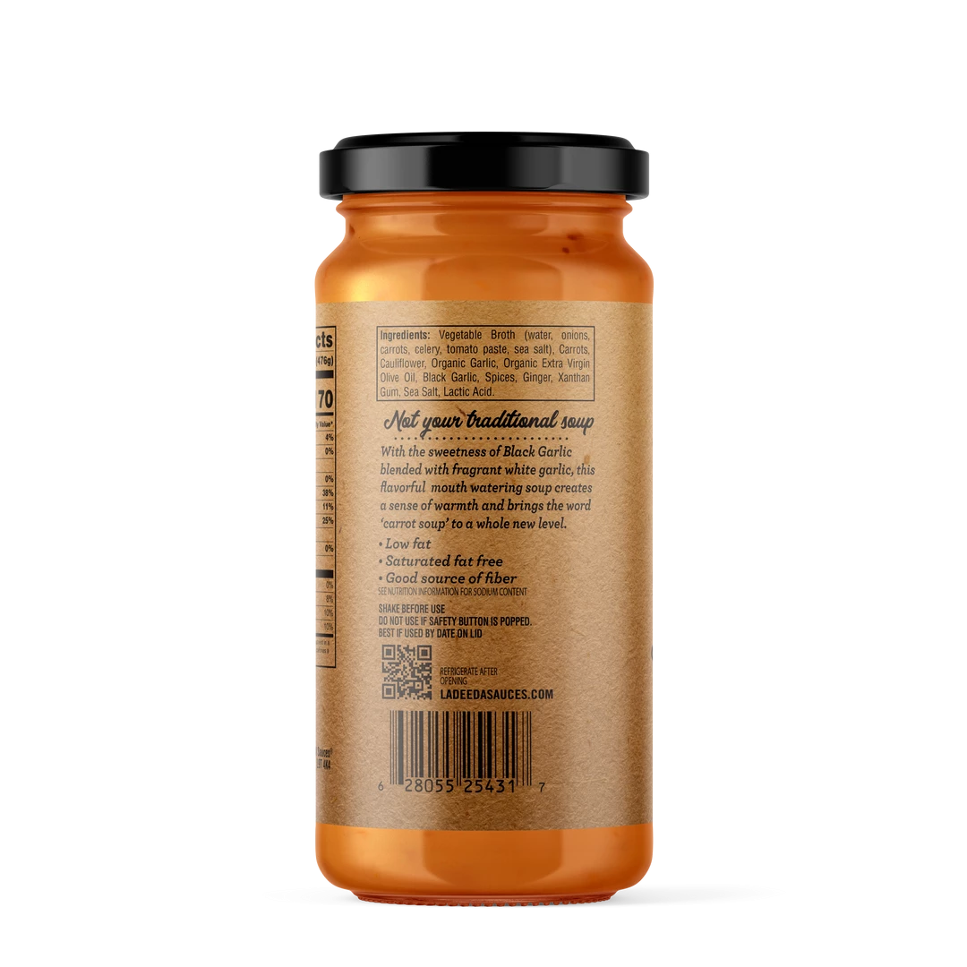 With the sweetness of Black Garlic blended with fragrant white garlic, this flavorful mouth watering soup creates a sense of warmth and brings the word ‘carrot soup’ to a whole new level.