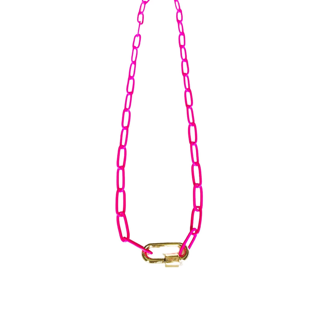16 inches long, but you can make it shorter by using the chain to adjust.