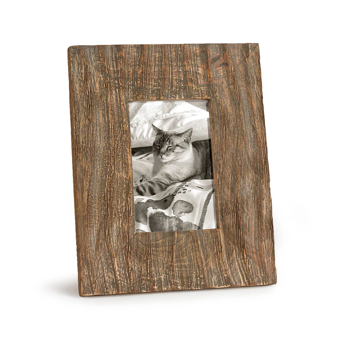 Rough wood grain with a subtle wavy pattern makes this frame a special accent. A masculine, natural way to display your treasured photos.