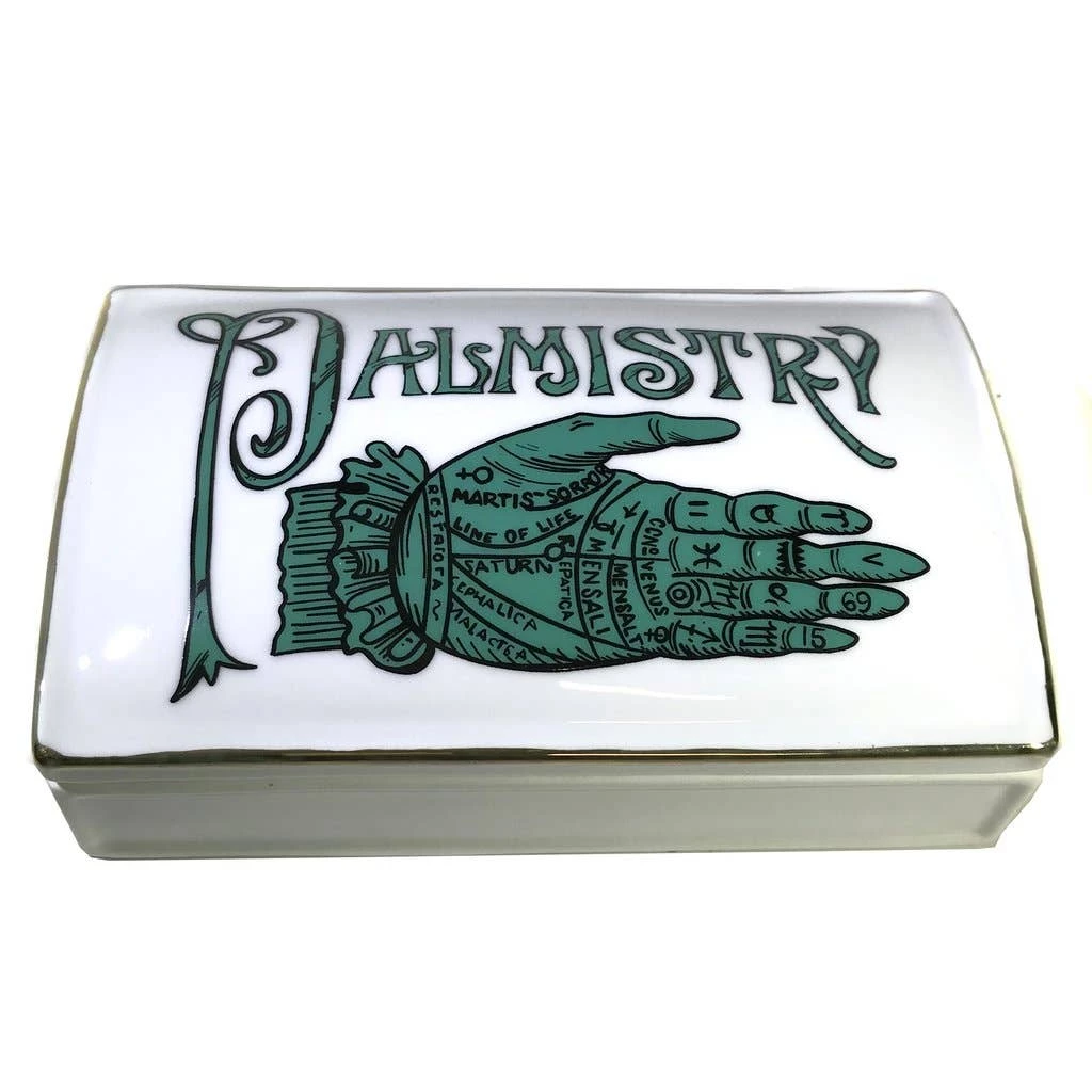 With a look from the past, and the notion of your future, this “hand decorated” ceramic palmistry box is the perfect size for sage bundles, tarot cards, much-beloved jewelry, and more!